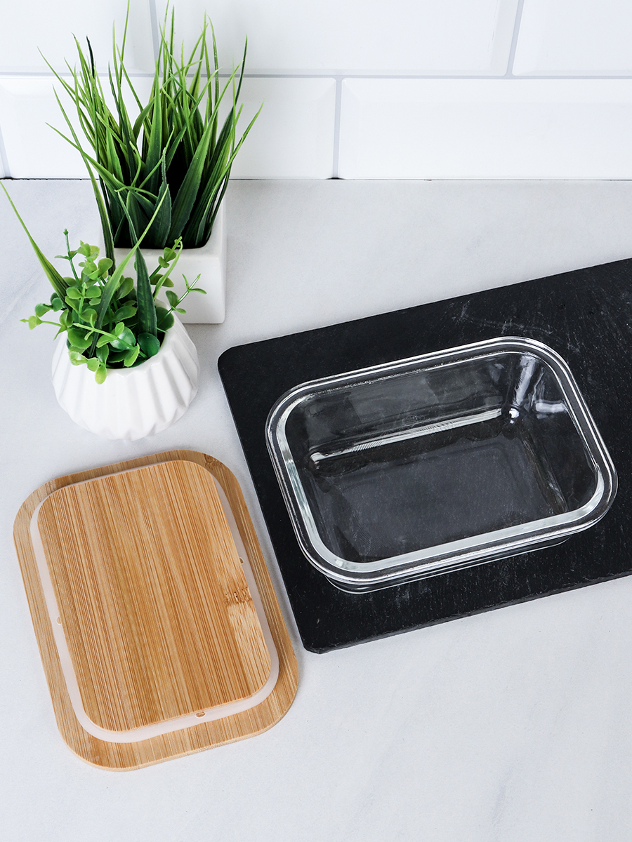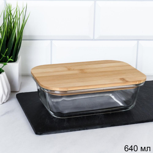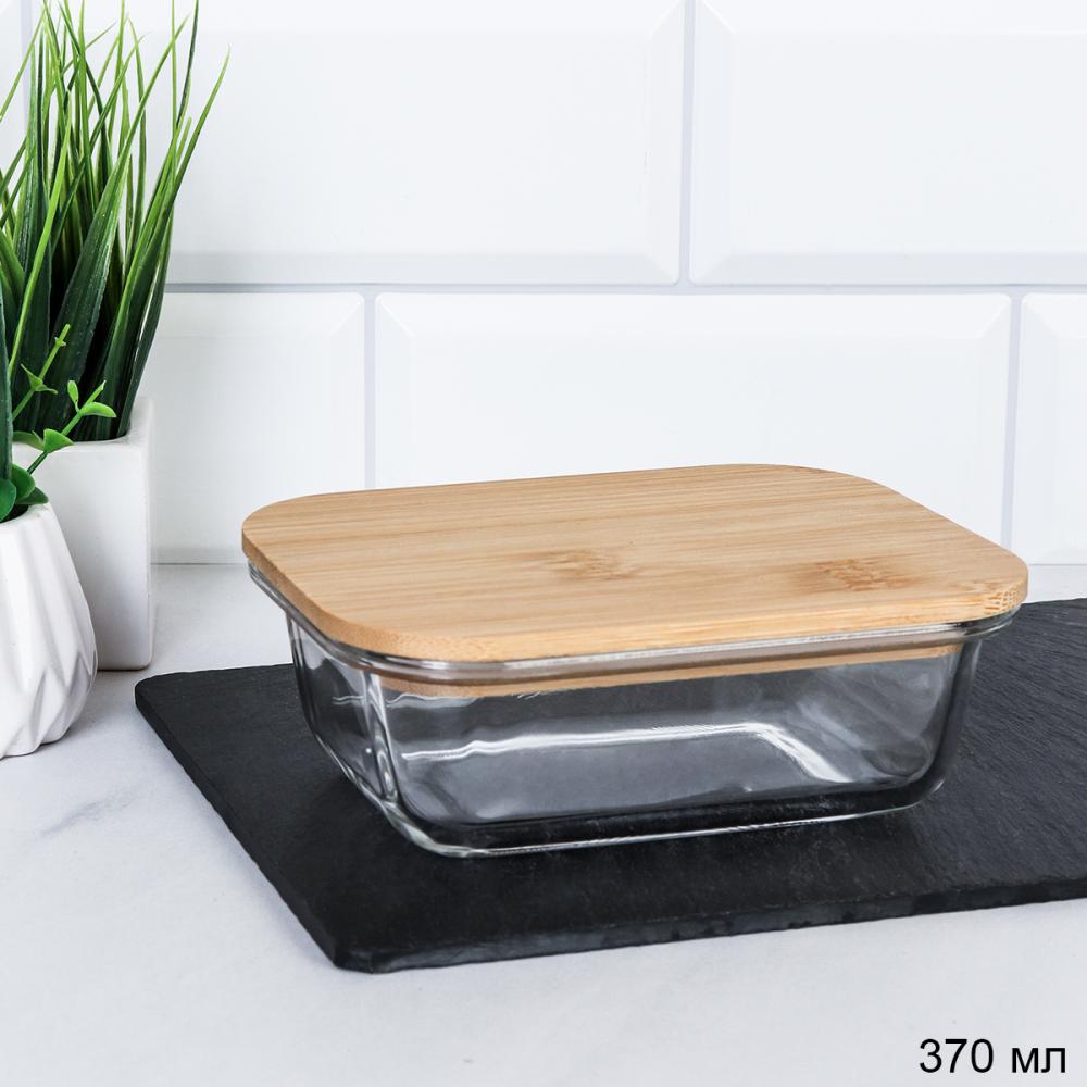 Контейнер прямоугольный крышка бамбук 370 мл стекло / P370 /уп 48/