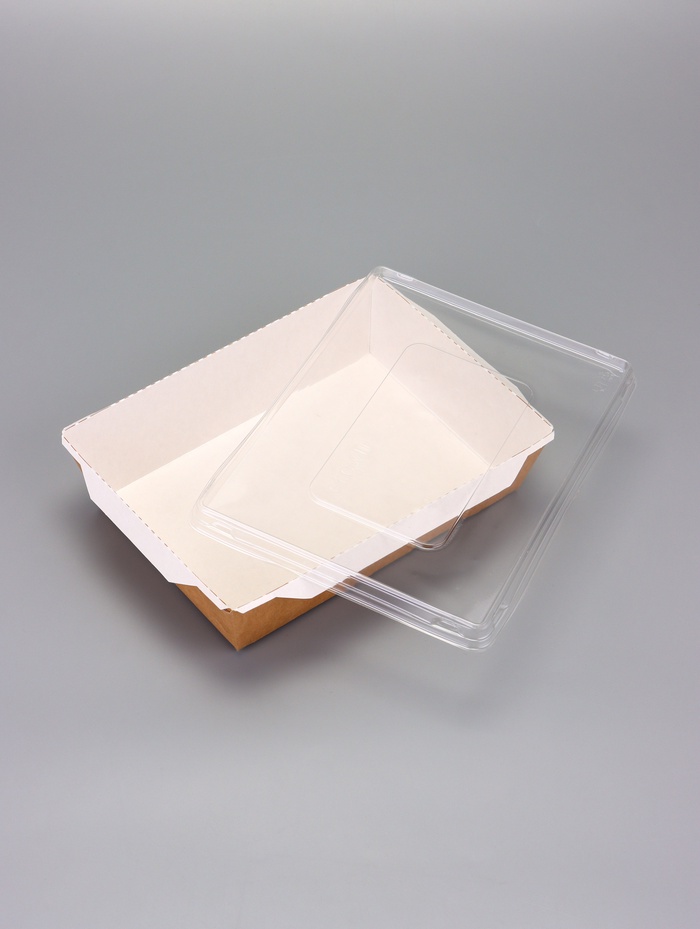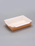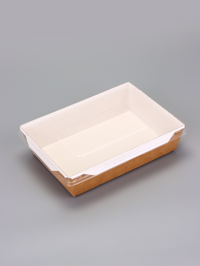 Контейнер - салатник, 1 л, крафт, с плоской прозрачной крышкой, 20×14×5.5 см