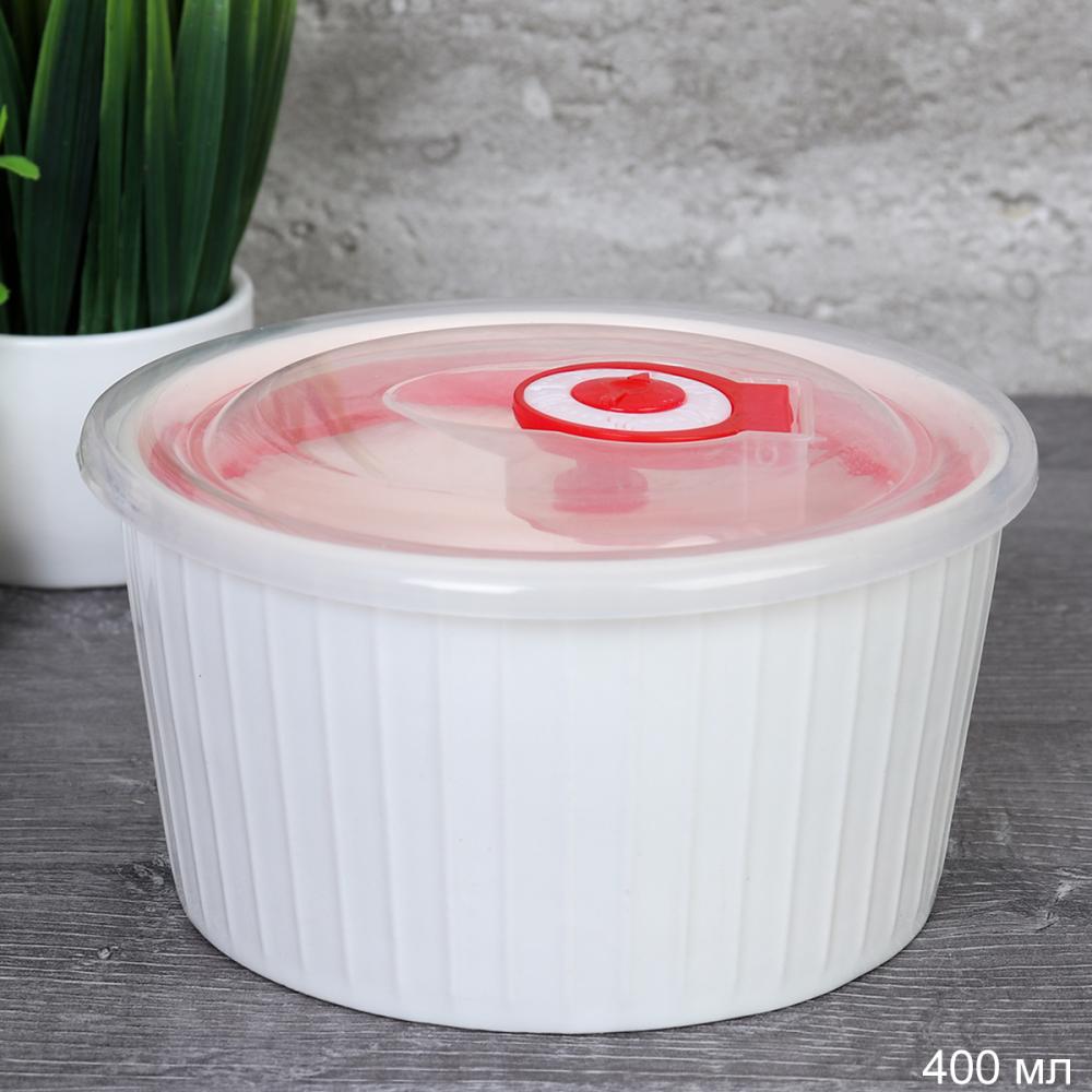 Контейнер салатник 400 мл крышка с клапаном / G-3514 /уп 22/ Костяной фарфор