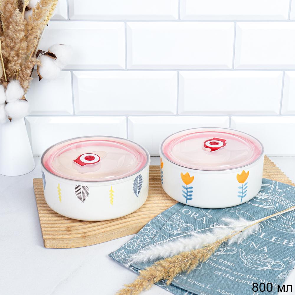 Фарфор Салатник с герметичной крышкой. Подходит для использования в СВЧ-печи и морозильной камере.