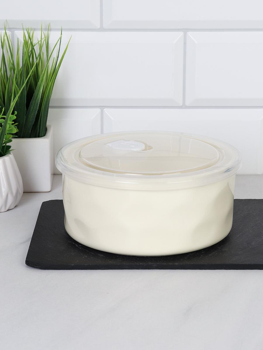 Контейнер-салатник из фарфора с пластиковой крышкой.