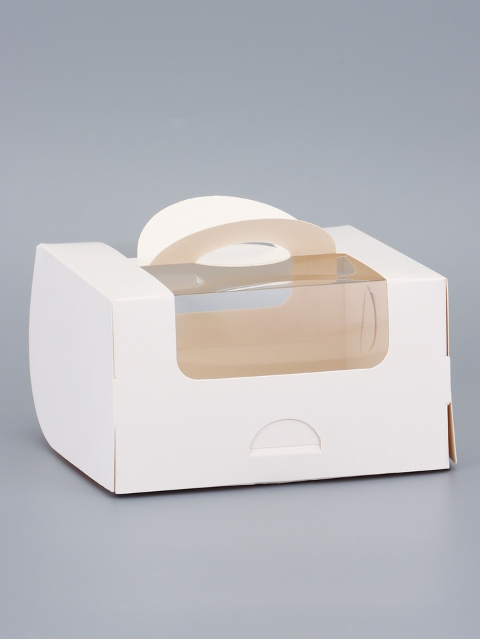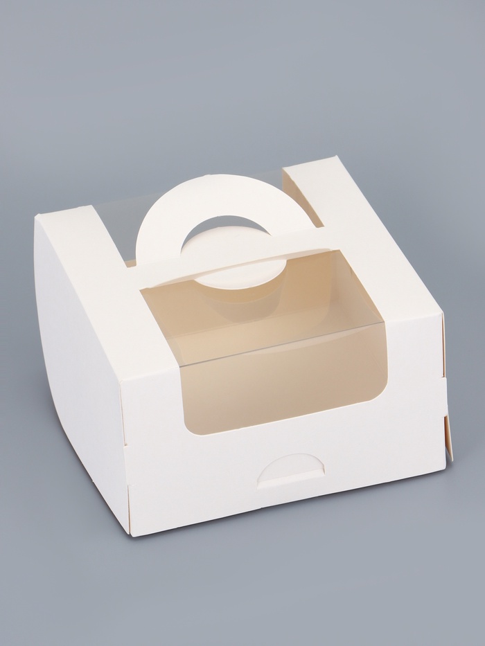 Коробка под бенто - торт с окном, белая, 14×14×8 см