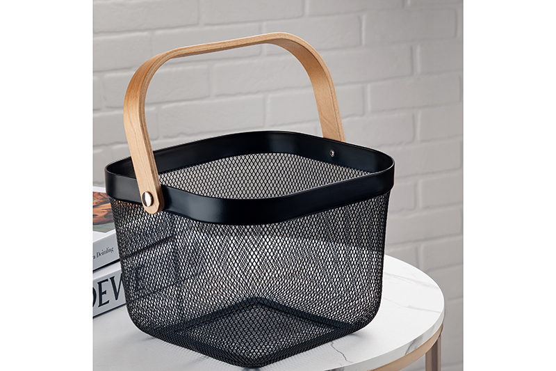 Корзинка с деревянной ручкой ELCASA "Черная" 26х26х18 см (размер корзины без ручки – 25х24,5х18 см) изготовлена из металла. Вместительная металлическая корзина черного цвета выполнена в универсальном дизайне и подойдёт к любому стилю интерьера. Разместите ее на столе, полке, в шкафу для хранения перчаток, ремней, шёлковых шарфов и платков. Удобная ручка из дерева позволит с легкостью перемещать органайзер из одной комнаты в другую. В прихожей корзинка пригодится для очков, ключей, визиток, канцелярии и других мелочей. Стильный дизайн придает корзине элегантный вид, что делает ее не только функциональным, но и привлекательным элементом декора для вашего интерьера. Универсальный ящичек станет незаменимым помощником для хранения косметики, украшений, принадлежностей для маникюра и лекарств. Коробочка позволит сохранить ваши вещи в безупречном состоянии. На кухне будет удобно складывать в интерьерный ящичек упаковки с чаем, пакеты с конфетами и сладостями или овощи и фрукты. Не рекомендуется применять абразивные моющие средства. Подарите органайзер на любой праздник маме или бабушке, чтобы они смогли разместить в одном месте предметы для рукоделия, пряжи и вязания. Интерьерный ящичек – это практичное, стильное и эстетически приятное решение для организации хранения ваших аксессуаров. Доступ к вашим вещам станет простым и удобным! /