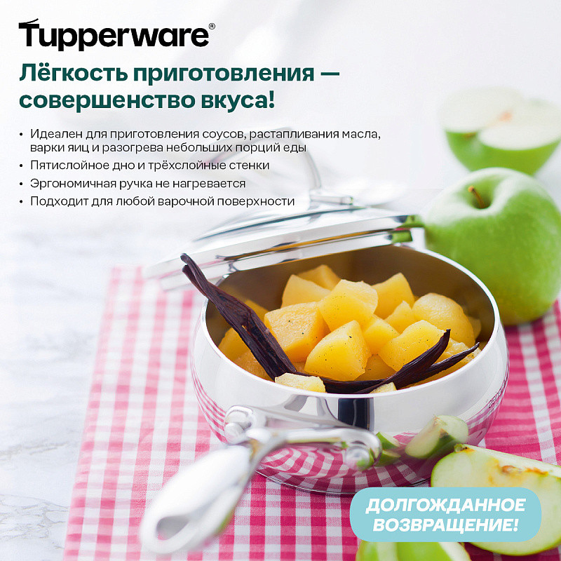 Ковш подходит для приготовления соусов, овощей, каш, варки яиц, разогревания небольших порций еды, растапливания масла.