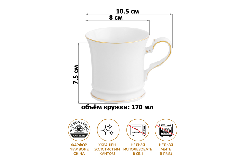 Кружка 170 мл 10,5*8*7,5 см "Белая с золотом" NEW BONE CHINA