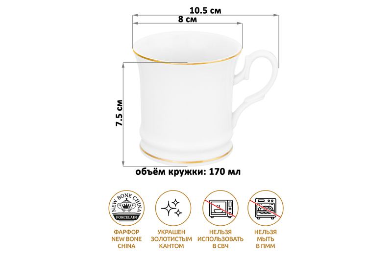 Кружка 170 мл 10,5*8*7,5 см "Белая с золотом" NEW BONE CHINA