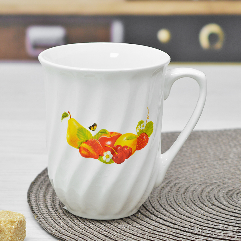 Кружка 225мл Фруктовый микс, эконом (99787)Классическая кружка из фарфора подойдет для ежедневного использования.Фарфор надолго сохраняет температуру напитка, а удобная ручка не нагревается, даже если налить в кружку кипяток.Объем - 225 мл.Заключаем договора по 44 ФЗ, 223 ФЗ