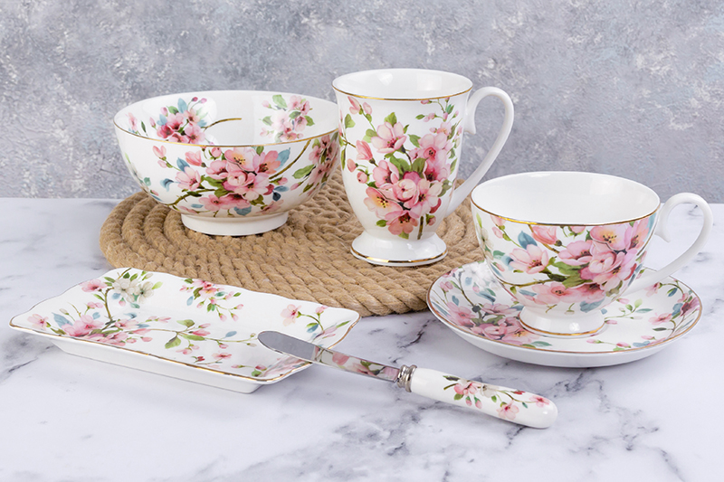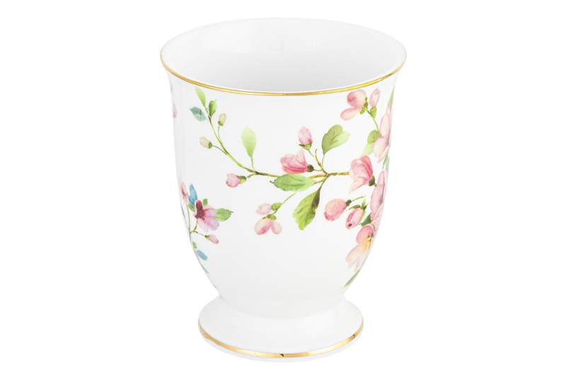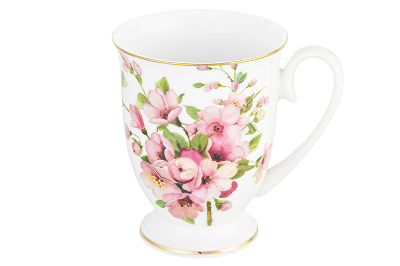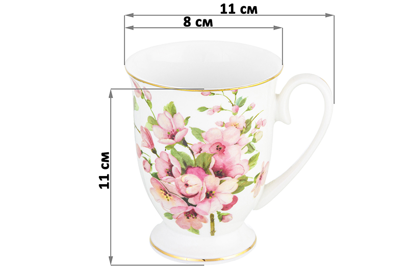 Кружка 300 мл 11*8*11 см "Яблоневый цвет на белом" на ножке, NEW BONE CHINA