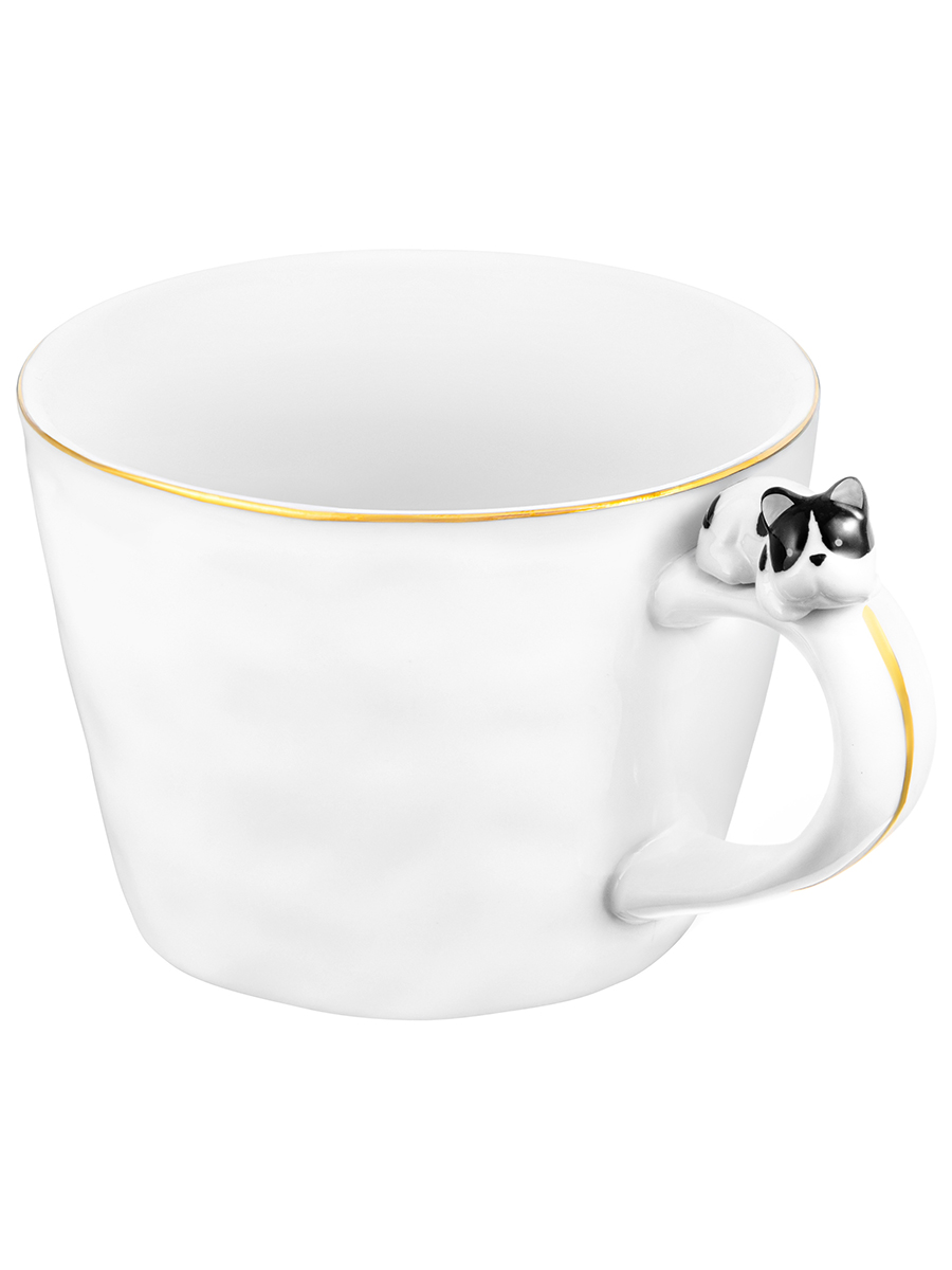 Кружка 300 мл 14*10*7,5 см "Бульдог" белый с золотом, фарфор