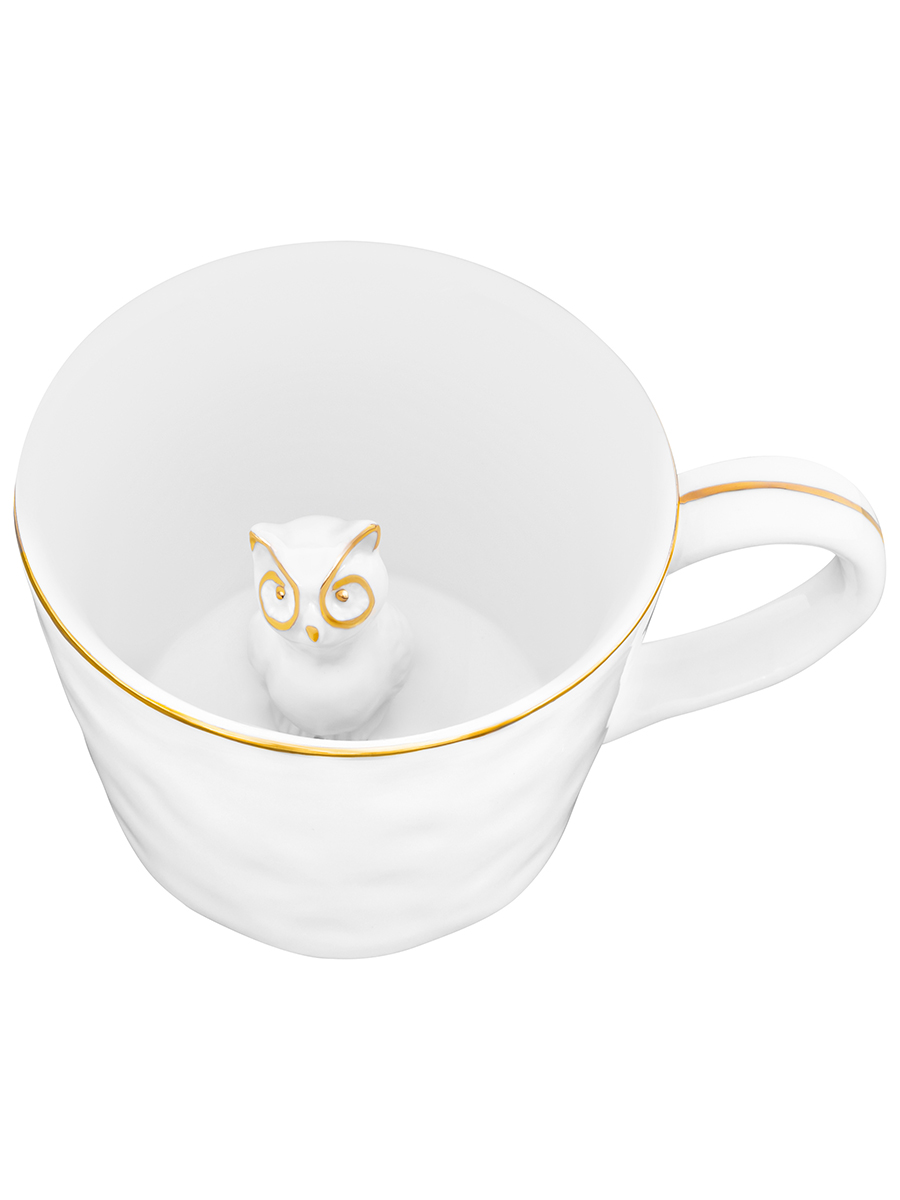 Кружка 300 мл 14*10*7,5 см "Сова" с фигуркой внутри, белый с золотом, фарфор