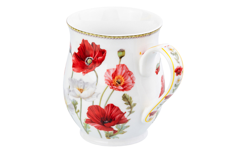 Кружка 350 мл 11,5*8,2*10 см "Маки" бочонок, NEW BONE CHINA