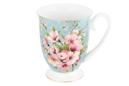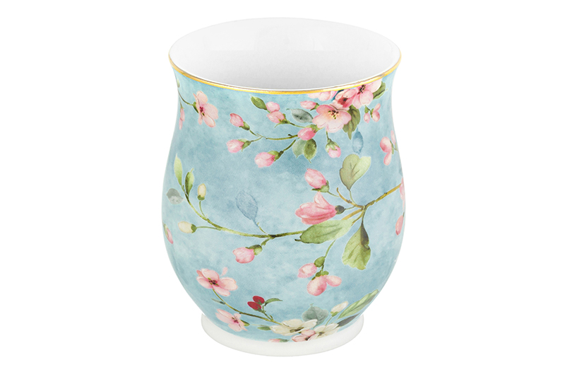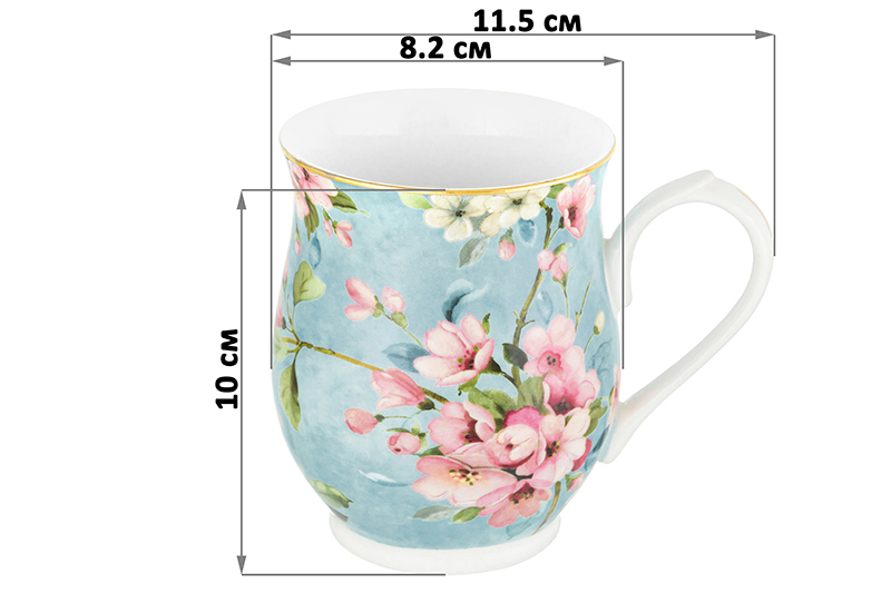 Кружка 350 мл 11,5*8,2*10 см "Яблоневый цвет на голубом" бочонок, NEW BONE CHINA