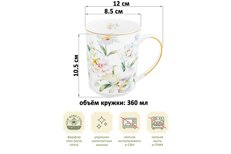 Кружка 360 мл 12*8,5*10,5 см "Корнелия" NEW BONE CHINA