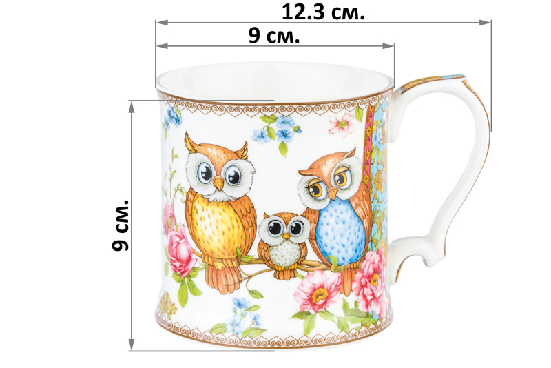 Кружка 380 мл 12,3*9*9 см "Совушки" NEW BONE CHINA