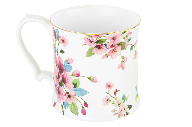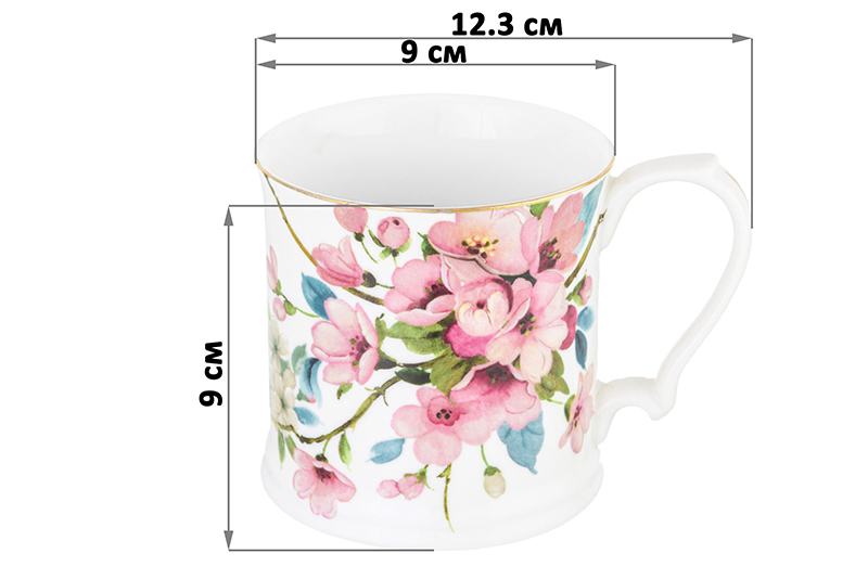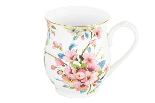 Кружка 380 мл 12,3*9*9 см "Яблоневый цвет на белом" NEW BONE CHINA