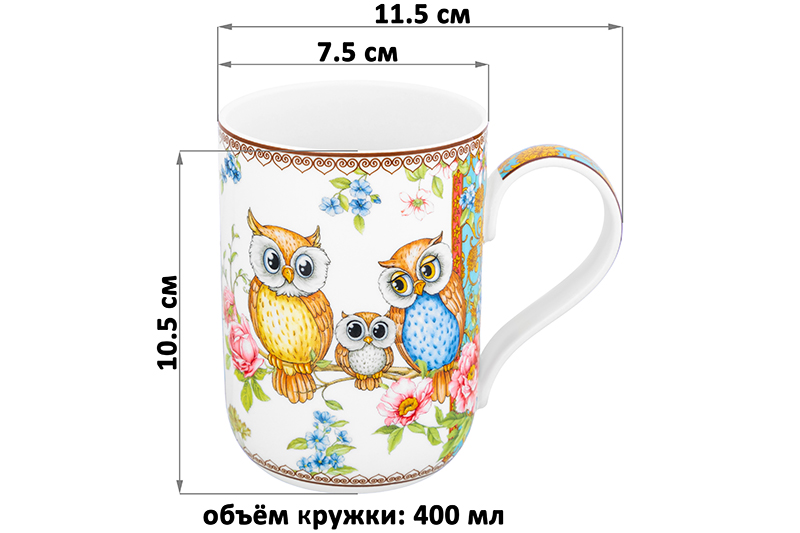Кружка 400 мл 11,5*7,5*10,5 cм "Совушки" NEW BONE CHINA