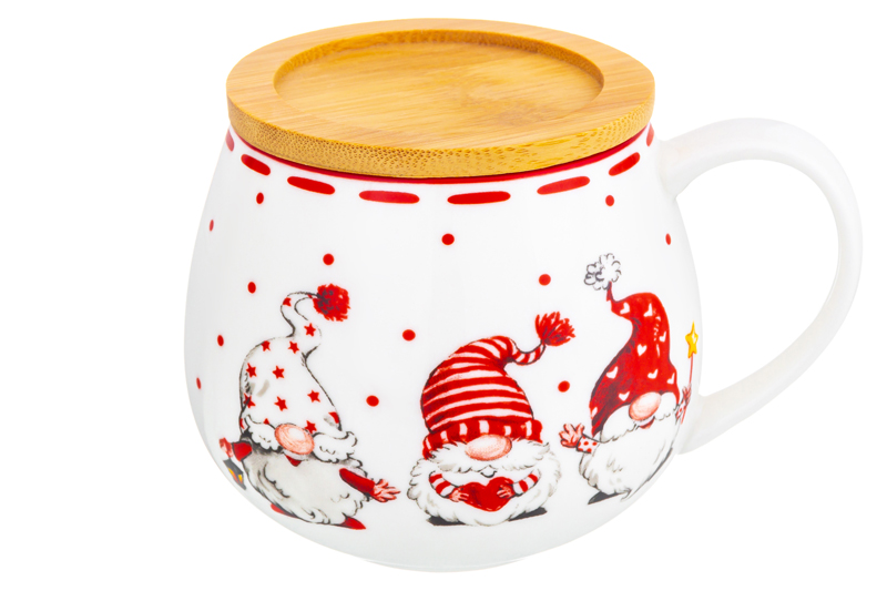 Кружка 400 мл 12,5*10*9,7 см "Весёлые гномики" бочонок + крышка-подст.