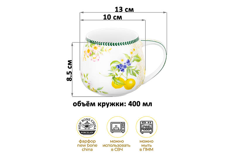 Кружка 400 мл 13*10*8,5 см "Лимоны" бочонок, NEW BONE CHINA