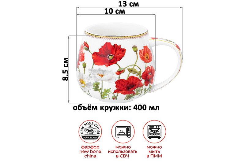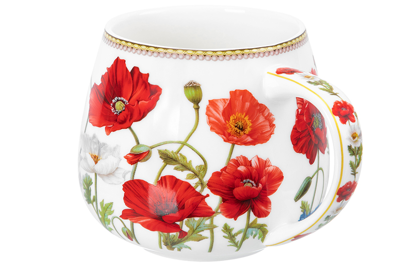 Кружка 400 мл 13*10*8,5 см "Маки" бочонок, NEW BONE CHINA