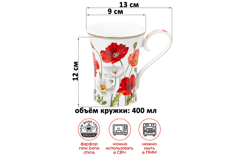 Кружка 400 мл 13*9*12 см "Маки" NEW BONE CHINA