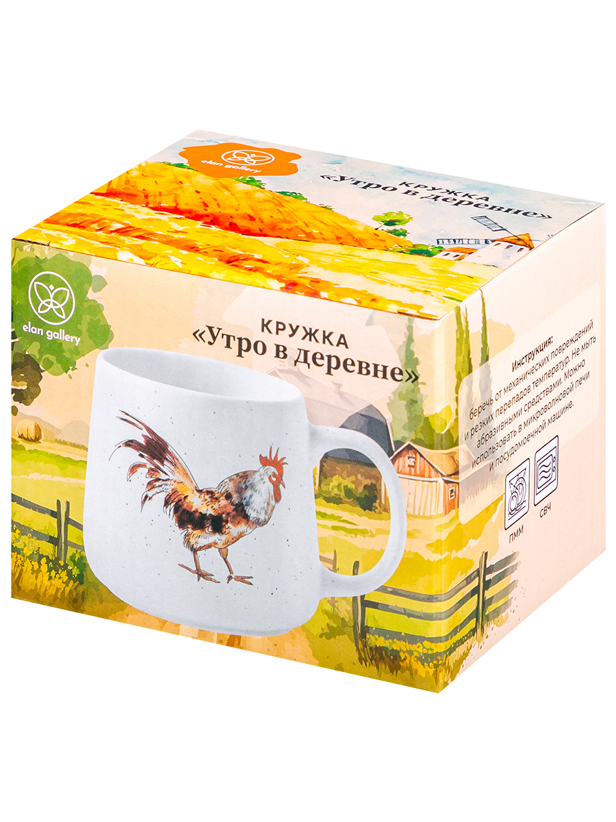 Кружка «Утро в деревне» от Elan Gallery предназначена для эстетичной сервировки вашего стола. Размер изделия – 13х9,5х9 см, объём – 400 мл. Белая поверхность в чёрную крапинку украшена двусторонним рисунком в виде петушка, выполненном в акварельной манере. Выполнена из высококачественного белого фарфора. Он не впитывает цвет напитков и легко отмывается, благодаря чему надолго сохраняет свой оттенок. Изделие перенесёт вас в атмосферу беззаботного детства и летних каникул в деревне, даря чувство тёплой ностальгии. Кофейная кружка поможет вам провести множество приятных завтраков с капучино и латте, а также уютные чайные вечера с конфетами, вафлями, другими десертами и сладостями. Подойдёт ценителям чая и кофе, которые любят пить из красивой и необычной посуды. Согрейтесь зимой любимым напитком: какао с маршмэллоу, ягодным чаем или горячим шоколадом. Летом освежитесь домашним лимонадом или морсом. Благодаря минималистичному дизайну комплект впишется в интерьер любой кухни, гостиной или столовой. Не рекомендуется применять абразивные моющие средства. Подходит для использования в посудомоечной машине и микроволновой печи. Поставляется в дизайнерской картонной коробке – благодаря ей вам не потребуется дополнительная подарочная упаковка. Наслаждайтесь ароматными напитками из кружек от бренда Элан Галерея и добавьте в повседневность комфорт и эстетику!