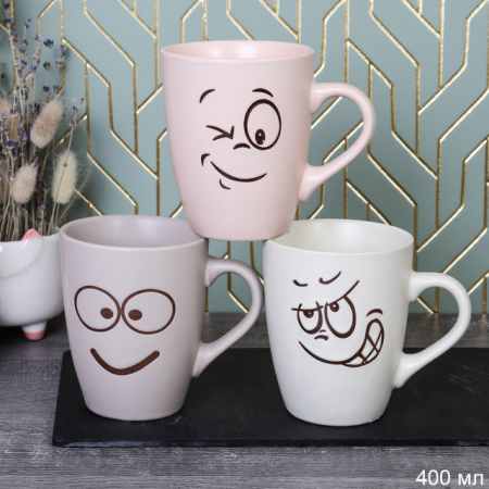 Кружка 400 мл Смайлик Пастель/ RF-444-1 /уп 72/ микс 3