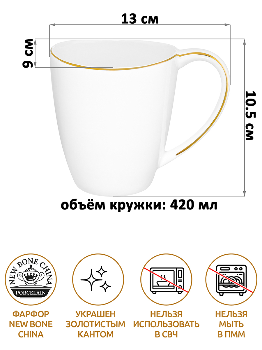 Кружка 420 мл 13*9*10,5 см "Белая с золотом" NEW BONE CHINA