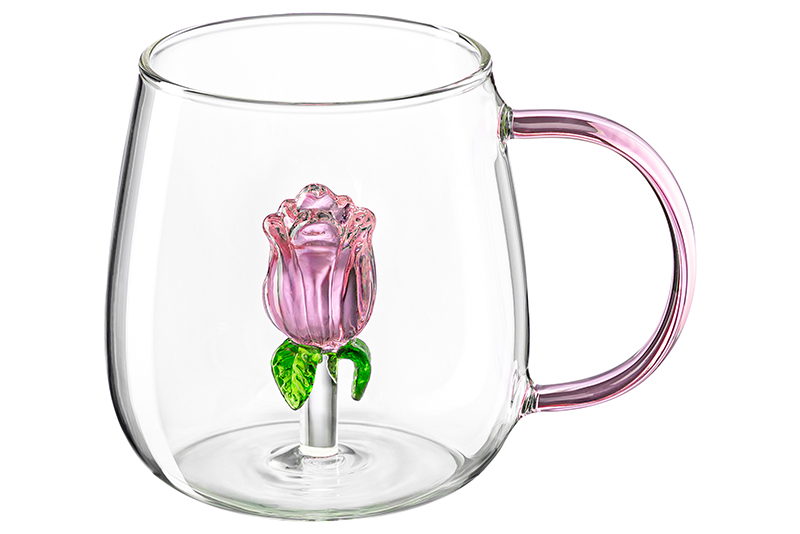 Кружка «Роза» предназначена для красивой сервировки стола. Размер изделия – 12х8,8х9 см, объём – 450 мл. Выполнена из термостойкого боросиликатного стекла. На дне прозрачной ёмкости с ручкой розового цвета располагается объёмная фигурка в виде нежного бутончика розы с зелёными листочками. Милая кружка понравится ценителям чая и кофе, которые любят пить из необычной посуды. Используйте её как детскую – она отлично подойдёт для молока, сока и воды любой температуры. Это идеальный вариант для уютных зимних вечеров в компании любимого горячего напитка. Летом в ней будут привлекательно смотреться напитки со льдом, ягодами и фруктами. Такая сервировочная посуда украсит ваш стол как на праздник, так и в будни, и послужит изысканным дополнением вашего сервиза. Благодаря лаконичному дизайну она впишется в интерьер любой кухни или столовой. Беречь от механических повреждений. Не рекомендуется применять абразивные моющие средства. Можно использовать в микроволновой печи и посудомоечной машине. Поставляется в стильной картонной упаковке – с ней вам не понадобится дополнительная подарочная коробка. Кружка с цветком станет прекрасным подарком для любой женщины. Декоративная стеклянная посуда поднимет настроение как детям, так и взрослым, и привнесёт эстетики в ваш чайный инвентарь!