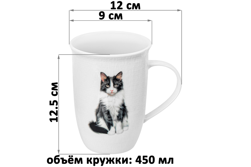 Кружка «Кот Степан» предназначена для красивой сервировки стола. Размер ёмкости – 12х9х12,5 см, объём – 450 мл. Выполнена из фарфора нового поколения new bone china, сочетающего в себе изящность и высокую прочность. За счёт гладкости изделия легко отмываются, поэтому сохраняют привлекательный вид и практичны в использовании. Плотная структура материала позволяет посуде дольше сохранять температуру блюд и напитков. От других видов костяного фарфора new bone china отличается большей экологичностью в производстве. Очаровательная кружечка с реалистичным изображением пушистого чёрно-белого котика дополнит любой интерьер и подарит хорошее настроение как взрослым, так и детям! Рельефная поверхность придаёт рисунку объём. Декоративная чашка поможет провести множество приятных завтраков с капучино и латте, а также уютные чайные вечера. Она подойдёт ценителям кофе и чая, которые любят пить из красивой и необычной посуды. Согрейтесь любимым горячим напитком зимой или освежитесь лимонадом летом в компании очаровательного зверька. Кружечка дополнит ваш стол на любом чаепитии, а универсальный дизайн обязательно впишет её в интерьер вашей квартиры. Не рекомендуется применять абразивные моющие средства. Подойдёт для использования в микроволновой печи и посудомоечной машине. Поставляется в стильной картонной упаковке. Наслаждайтесь тёплой и уютной атмосферой вместе с симпатичным котиком. Пусть ваш день наполнится радостью и заставит мурчать от удовольствия!
