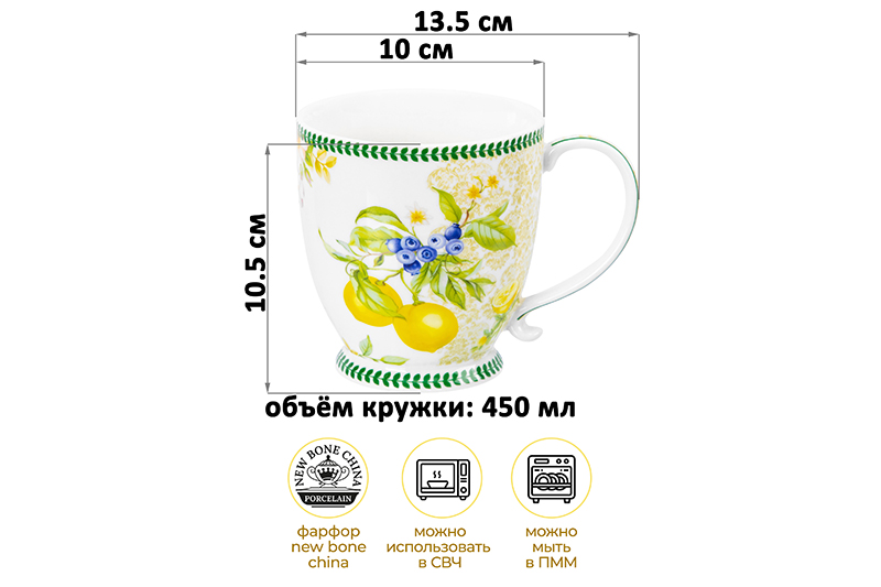 Кружка 450 мл 13,5*10*10,5 см "Лимоны" на ножке, NEW BONE CHINA