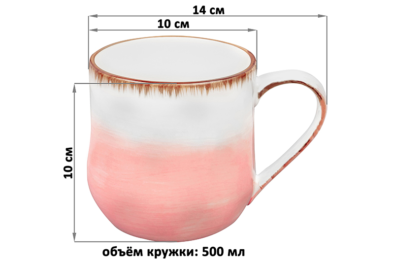 Кружка 500 мл 14*10*10 см "Кантри" коралловая