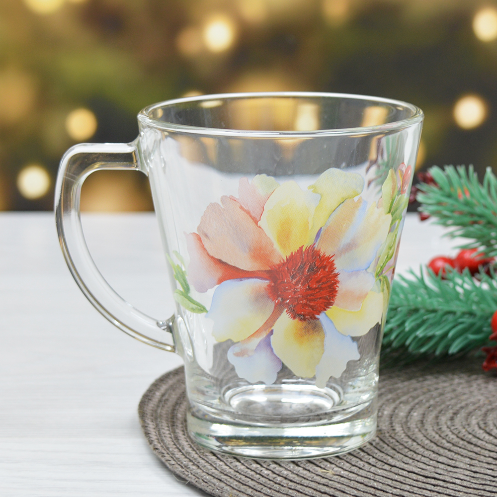 Кружка "Аура" Акварельные цветы 300млКлассическая кружка из стекла подойдет для ежедневного использования.Объем - 300 мл.Заключаем договора по 44 ФЗ, 223 ФЗ