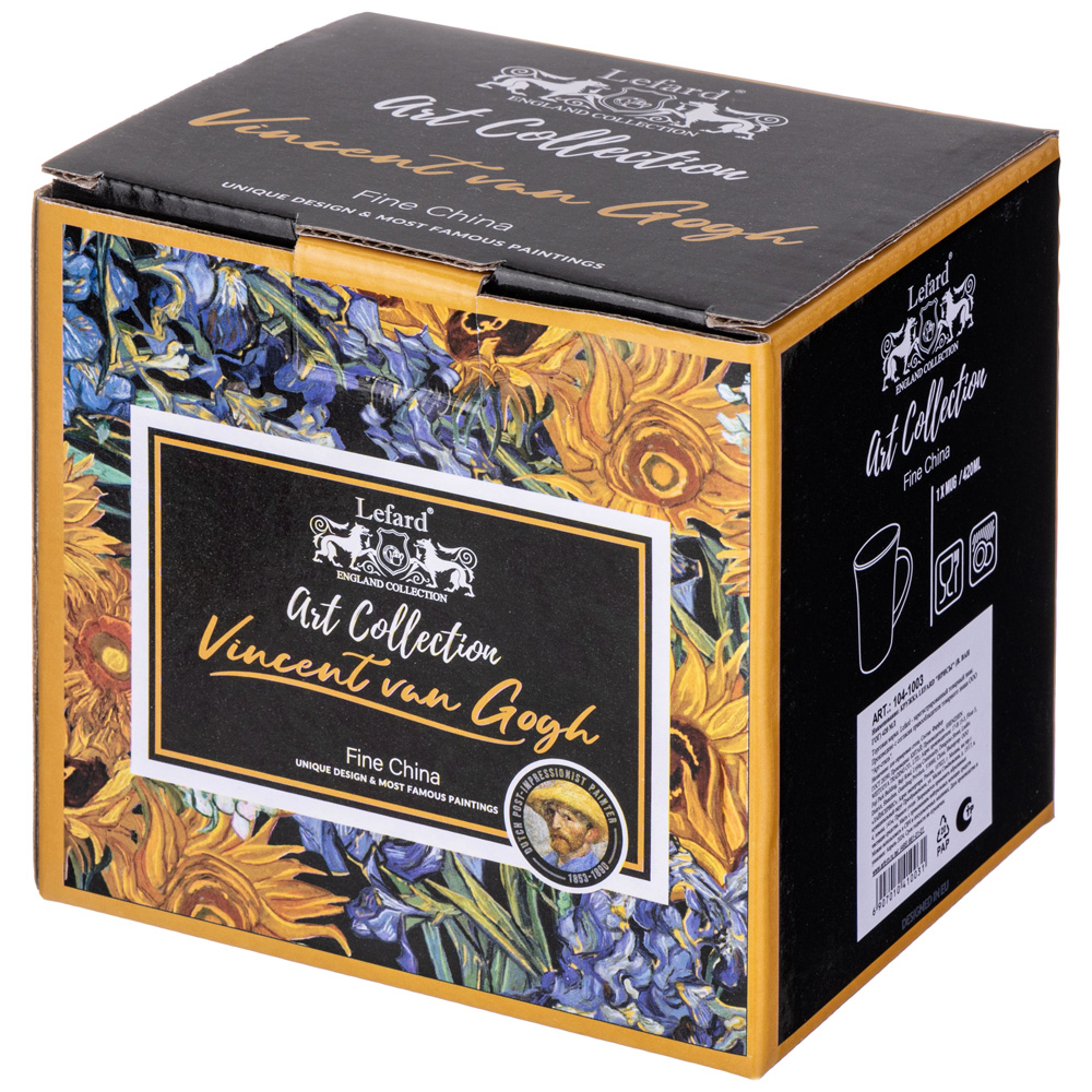 Арт Коллекция для ценителей прекрасного. Изделия из тонкостенного фарфора. Посуда прошла сертификацию. Безопасна для контакта с пищевыми продуктами. Декор по мотивам картин Винсента Ван Гога. Удобная форма. Отличный подарок. Разрешено использование в микроволновой печи, можно мыть в посудомоечной машине мягкими моющими средствами.