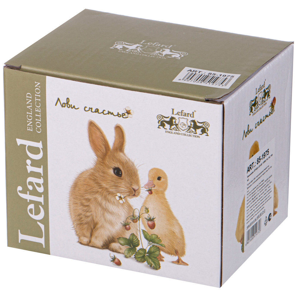 Наша жизнь состоит из маленьких мгновений счастья. Поймал это мгновение и наслаждайся! Только любовь и только доброта сделает мечты реальными. Пушистые крольчата и задорные утята заставят улыбнуться и согреть любовью родных и близких. ТМ LEFARD коллекция «Лови счастье» - это лучший подарок самым дорогим и любимым. Кружки, чайные пары, тарелки и салатники выполнены на тонкостенном высококачественном фарфоре. Удобные формы и размеры. Красочная упаковка. Продукция прошла сертификацию, безопасна для контакта с пищевыми продуктами. Можно использовать в микроволновой печи, мыть в посудомоечной машине.