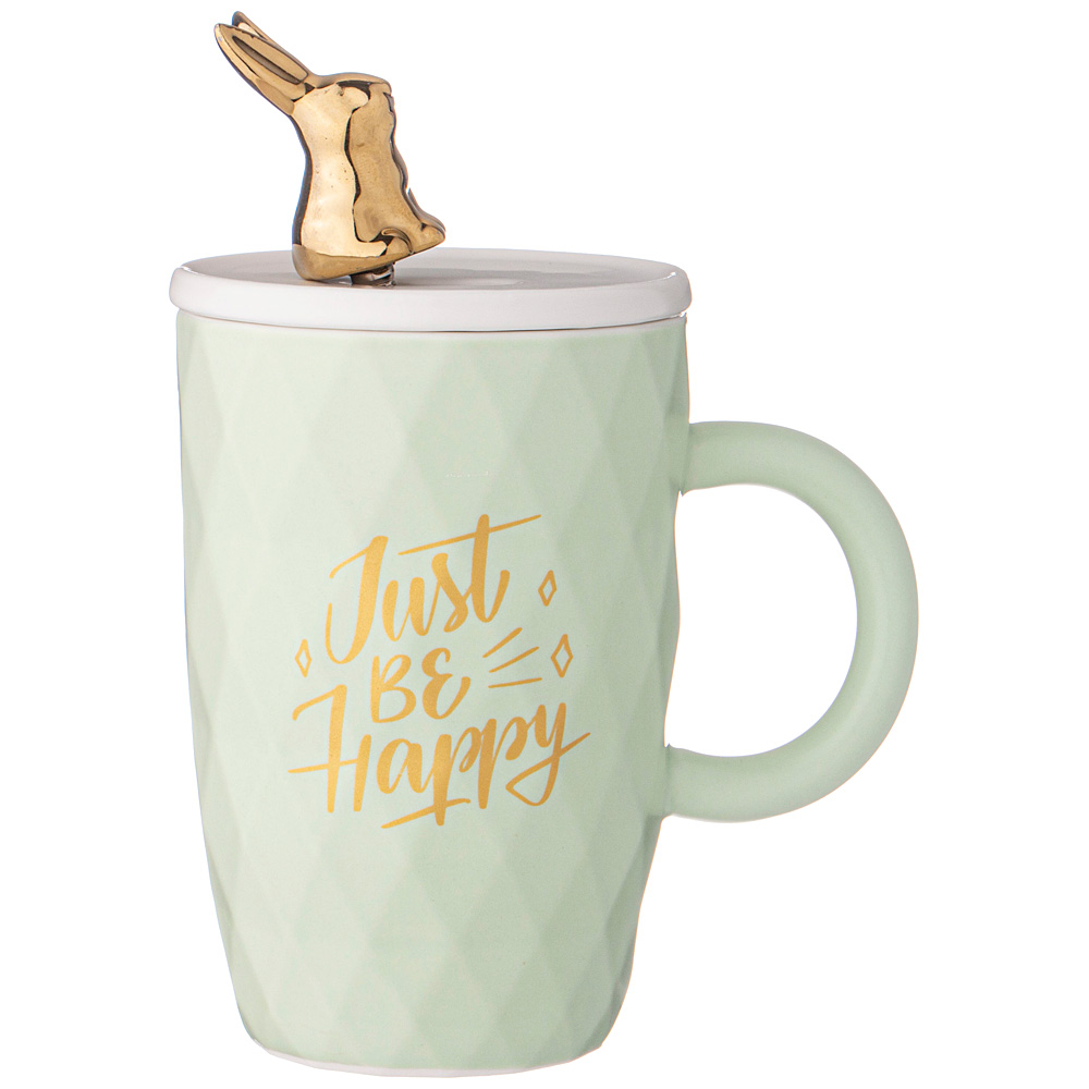 Позитивная кружка с фигуркой зайца на ложке. Объем кружки 390 мл. Высота кружки с крышкой и ложкой 17см. Цвет: мятный. Кружку можно использовать в СВЧ и посудомоечных машинах. Ложку нельзя мыть в ПММ и использовать в СВЧ.