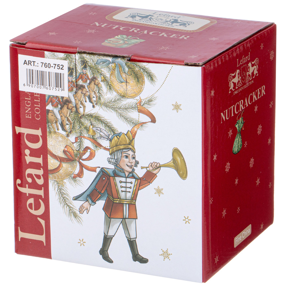 ТМ LEFARD эксклюзивная коллекция «Nutcracker» - Щелкунчик создана по мотивам одноименной истории, с которой знакомы все дети и взрослые. Волшебная история о новогоднем чуде идеально подходит для создания праздничного настроения. Широкий ассортимент тарелок, салатников, кружек, чайных пар поможет сервировать праздничный стол и создать сказочную атмосферу. Все изделия выполнены из качественного тонкого фарфора. Прямые современные формы, удобные объемы. Стильная, подарочная упаковка. Дарите сказку друзьям и близким людям! Не рекомендуется использовать в микроволновой печи, мыть в посудомоечной машине.