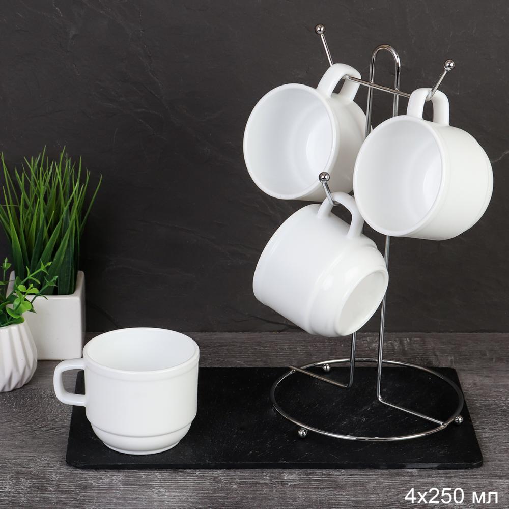 Кружка набор 4 штуки на металлическом стенде 250 мл форма офис / BY09KFB250 без упаковки 735924