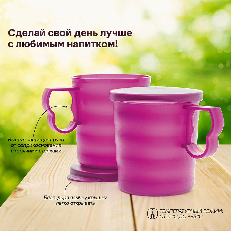 Безопасность: специальный волнообразный выступ на ручке защищает пальцы от соприкосновения с горячими стенами кружки.