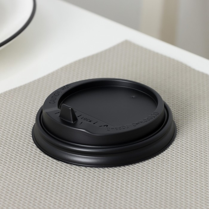 Крышка пластиковая одноразовая для стакана чёрная, с клапаном, d=8 см