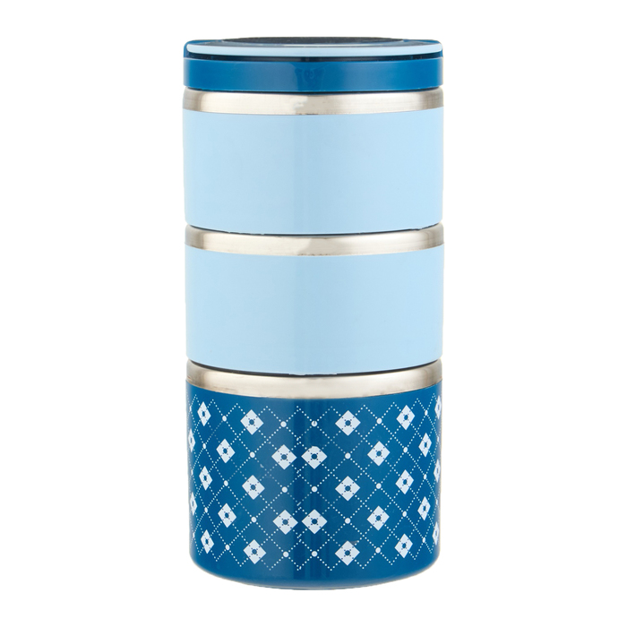 Ланч-бокс, 1.32 л, 3 уровня, сохраняет тепло 2 ч, нержавеющая сталь, синий, голубой