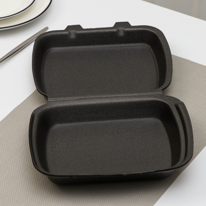 Ланч - бокс одноразовый, 24.7×20.6×3.5 см, 1 секция, полистирол, чёрный