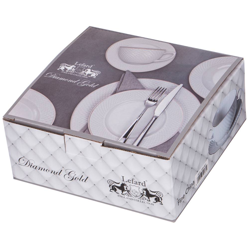 TM Lefard коллекция "Диаманд Голд" - посуда и предметы сервировки из белого фафора с золотой каймой. Изделия выполнены из упрочненного фарфора. Стильная упаковка. Идеальная сервировка праздничного и ежедневного стола. Отличный подарок! Продукция сертифицирована и безопасна для контакта с пищевыми продуктами. Нельзя ставить в микроволновую печь, не рекомендуется мыть в посудомоечной машине.