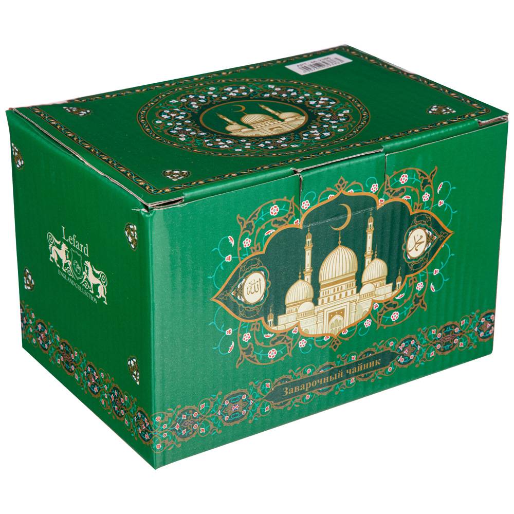 ТМ LEFARD представляет эксклюзивную коллекцию посуды «Суры из Корана». Кувшины, чайники, сахарницы, кружки, чайные пары, декоративные тарелки и другие предметы выполнены из высококачественного тонкостенного фарфора. Восточный орнамент, небольшие отрывки Сур из Корана на классическом арабском и русском языках с отделкой золотом украшают изделия. Это прекрасный мусульманский подарок, всегда нужный и теплый. Относитесь к нему бережно и с почтением. Посуду коллекции можно использовать как в повседневной жизни, так и на торжественном приеме. Не рекомендуется мыть в посудомоечной машине и использовать в микроволновой печи.