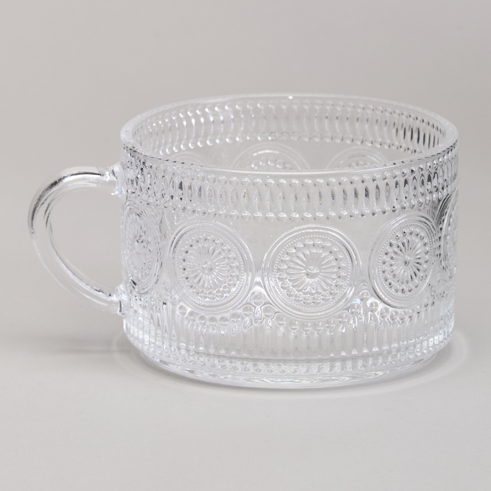 Объем в 400 мл делает её универсальной для различных напитков — от ароматного кофе и чая до освежающих коктейлей, и соков. Прозрачное стекло позволяет насладиться не только вкусом, но и красотой напитка, подчеркивая его насыщенные цвета и текстуры. Узоры на поверхности добавляют визуальное разнообразие, создавая уникальную эстетическую атмосферу.