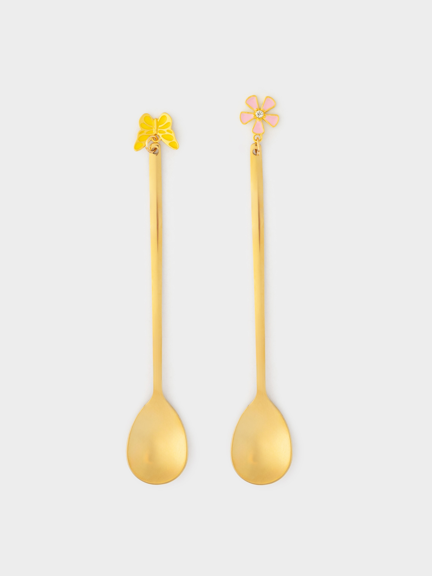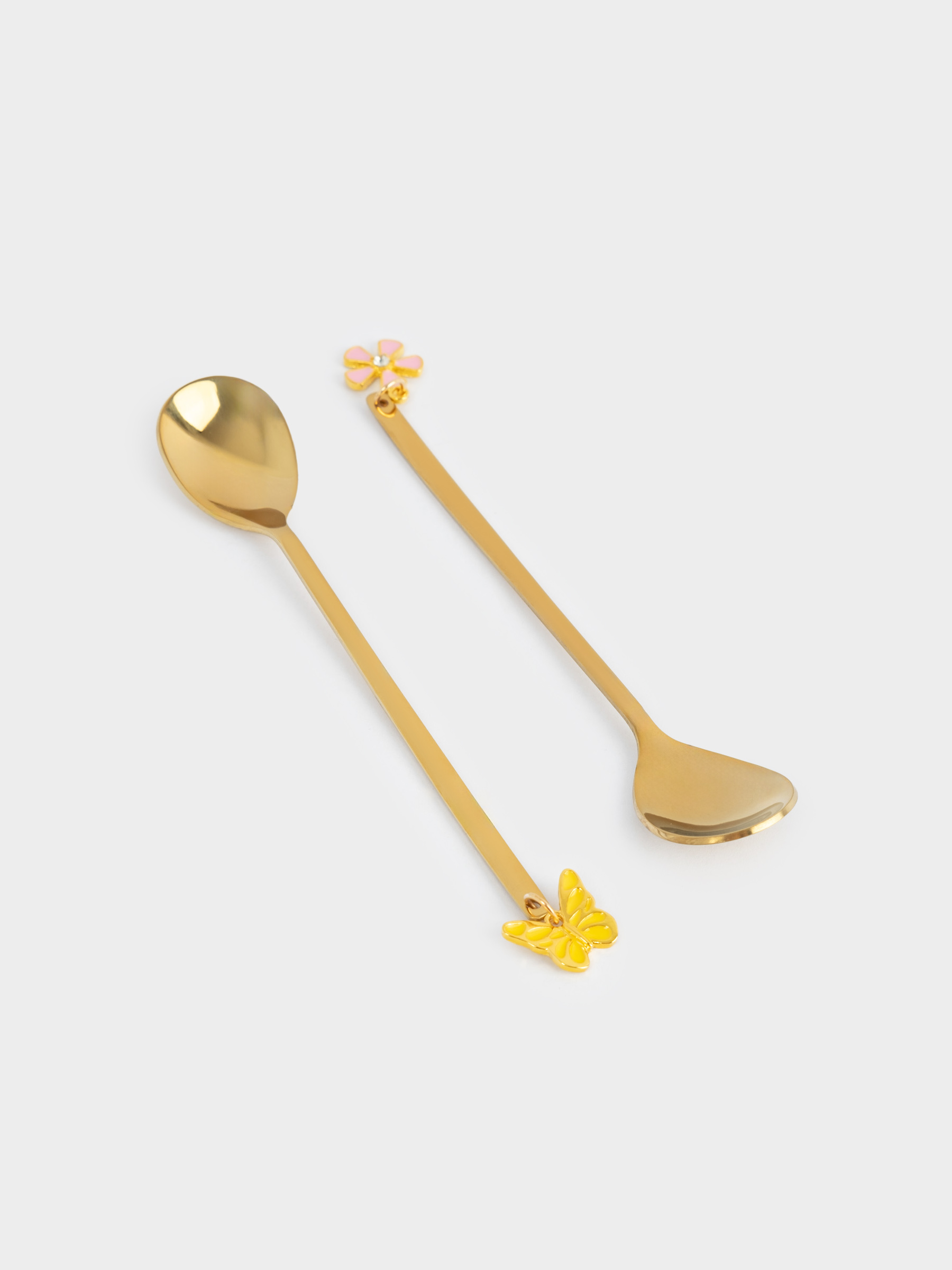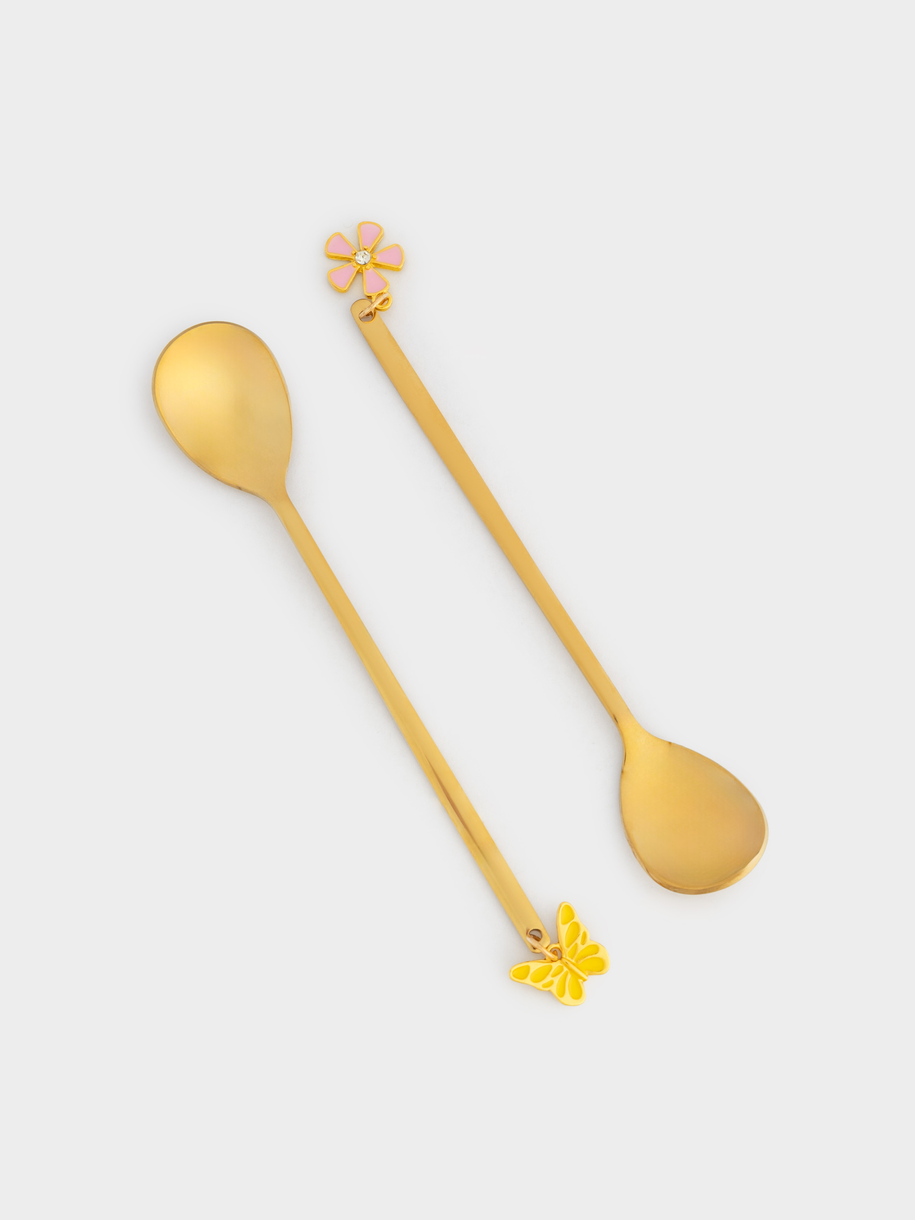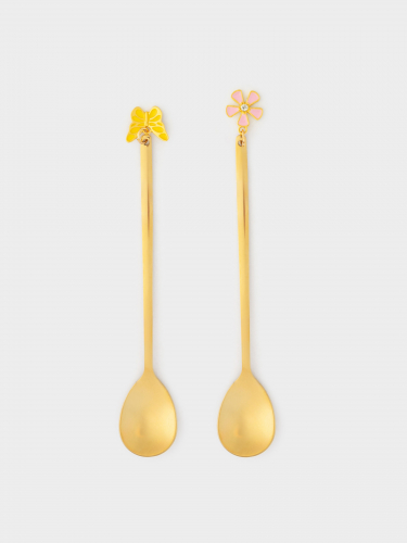 Ложка десертная, 14 см, 2 шт, сталь, золотистая, Цветок/Бабочка, Butterfly