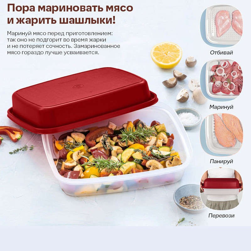 В Маринаднице удобно мариновать как мясо для шашлыка или жаркого, так и огурцы, кабачки, баклажаны, цветную капусту и брокколи.