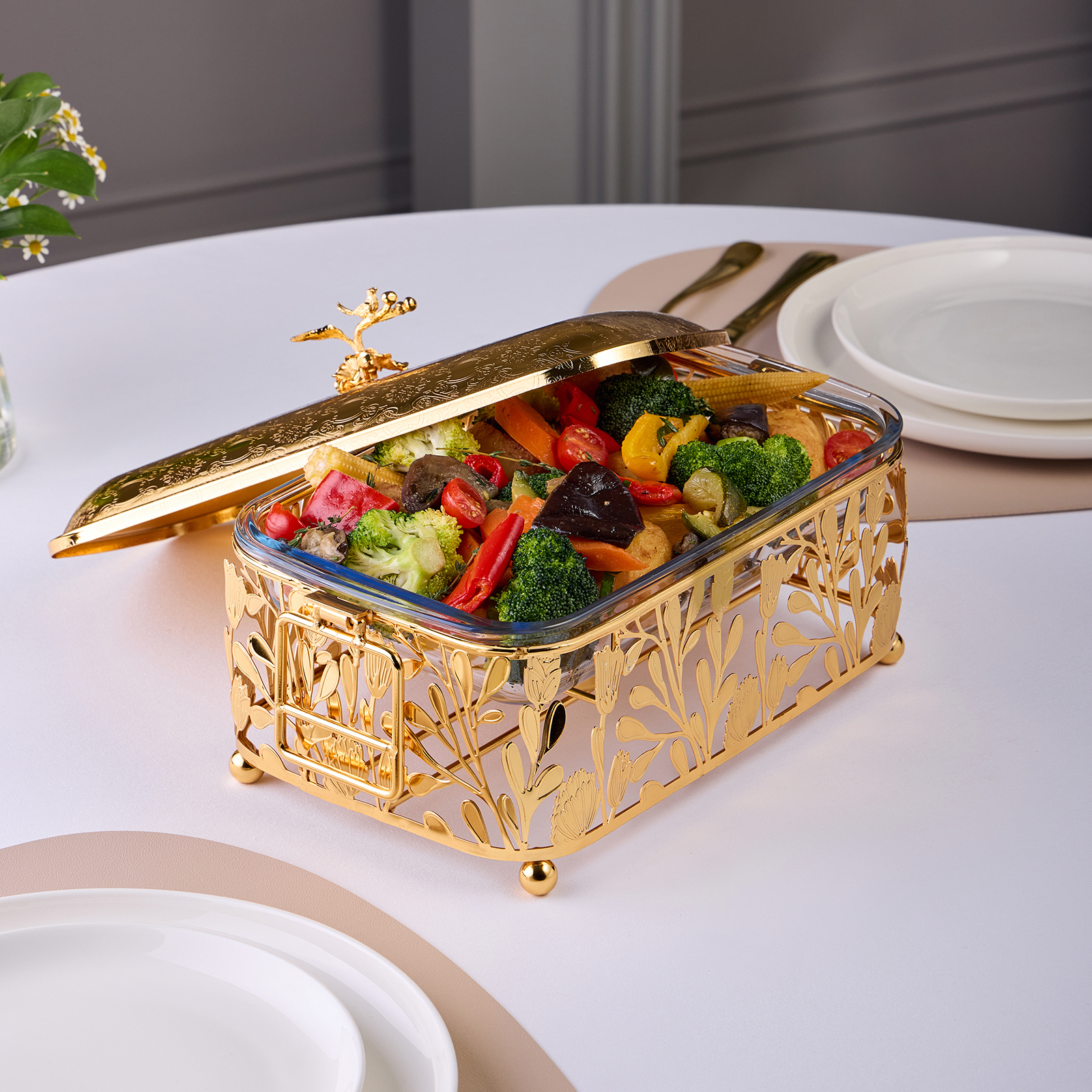 Стеклянную жаропрочную емкость можно использовать для запекания в духовом шкафу (максимальная температура нагрева до 400 С). Стеклянную емкость можно мыть в посудомоечнйо машине, хромированная подставка и крышка не подходят для мытья в посудомоечной машине.