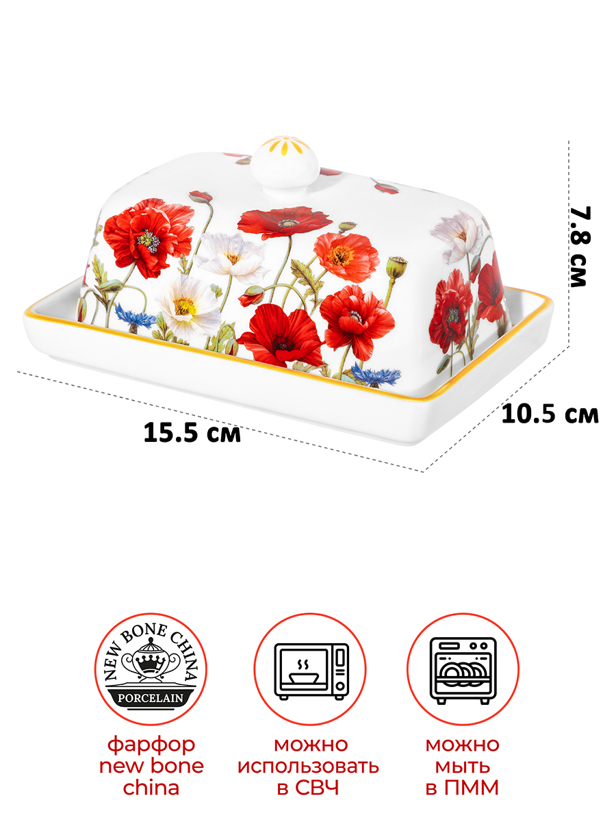Масленка 15,5*10,5*7,8 см "Маки" NEW BONE CHINA