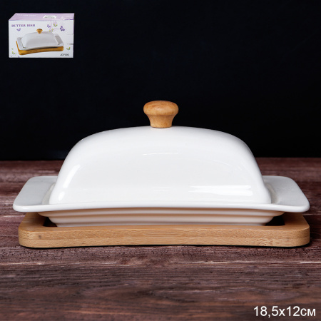 Масленка 18,5 см АКЦИЯ / JK-358 /уп 24/ на деревянной подставке