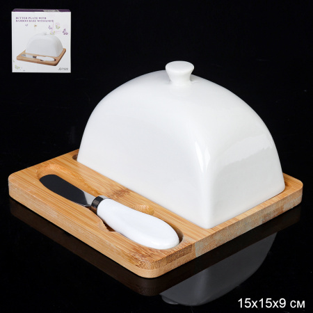 Масленка и нож 15х9 см / JD7322 /уп 36/ на деревянной подставке